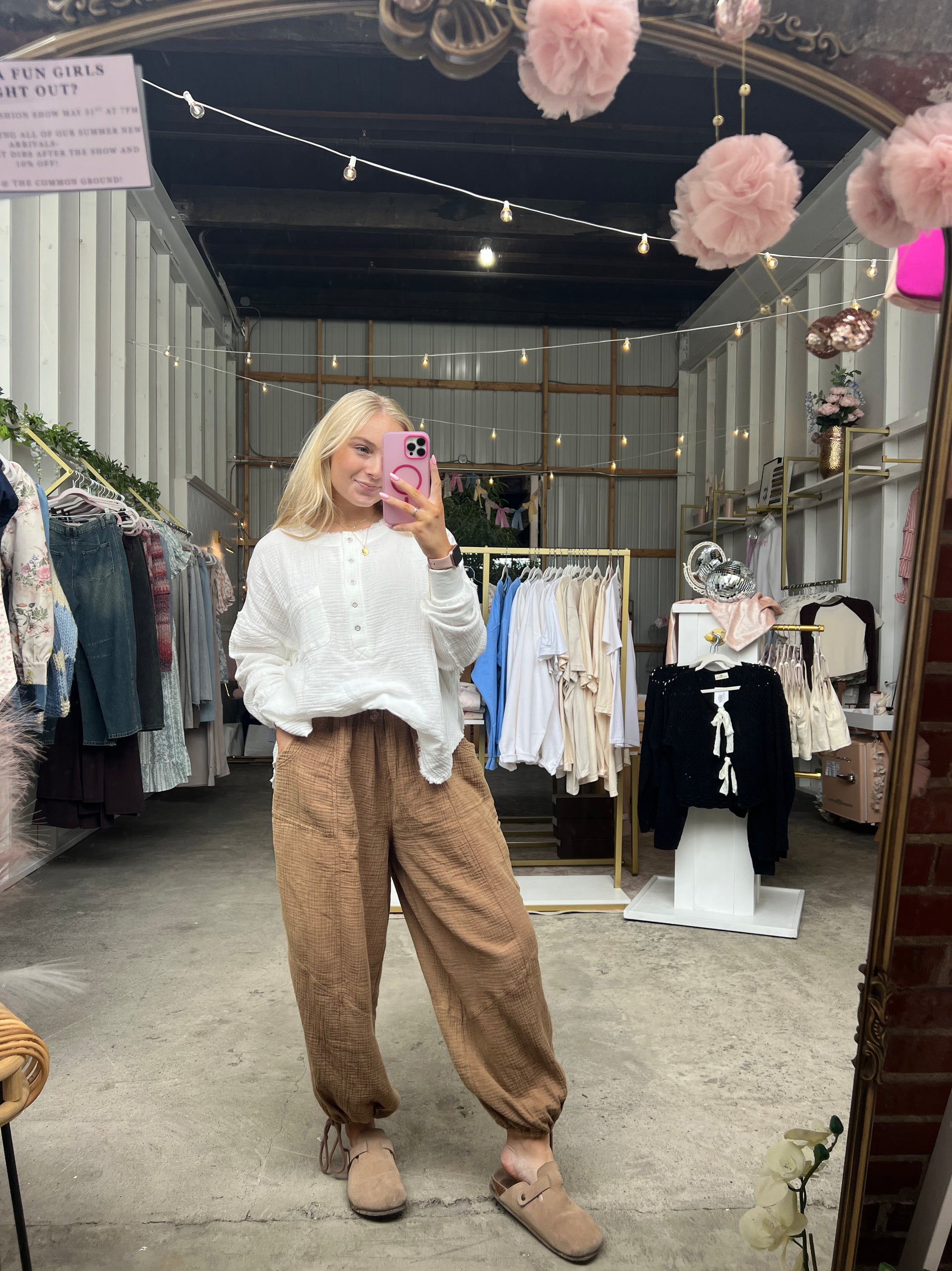 - Button up henley style top